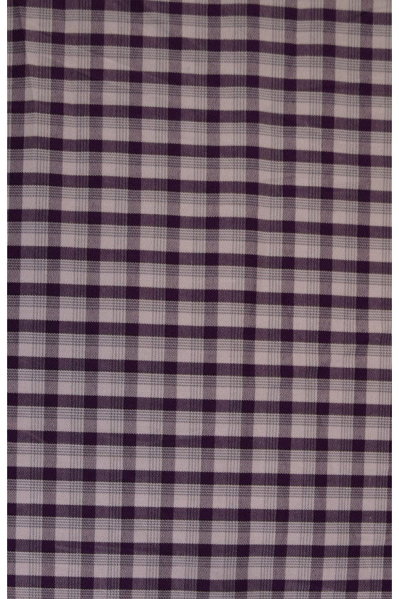 Бавовняна сорочка з білим і фіолетовим тонким клітком на 100% натуральна і підлягає вторинній переробці. Одяг з нього відмінно підійде для спекотних днів. Ми рекомендуємо його для пошиття сорочок, блузок, суконь або спідниць.
