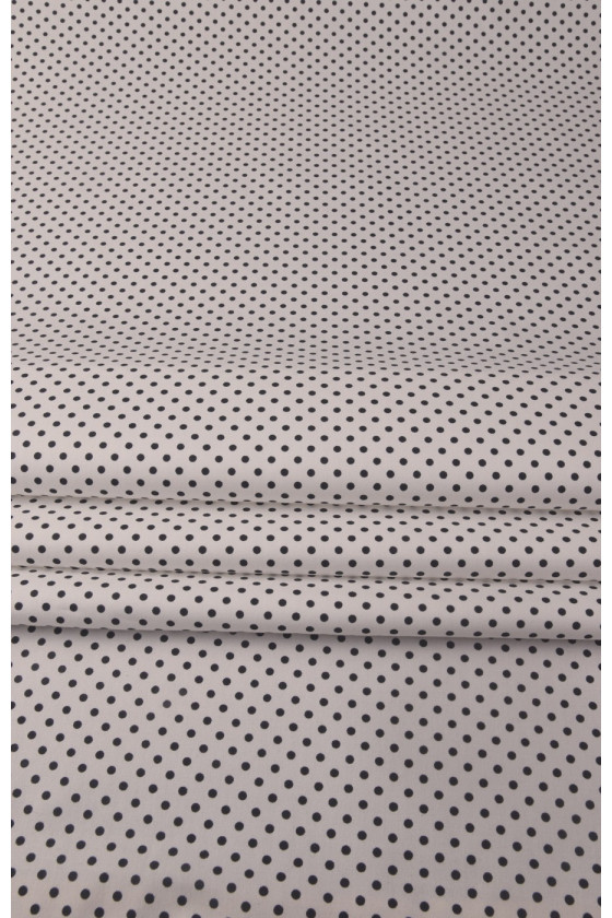 Біла сорочка бавовна з дрібними чорними крапками на 100% натуральна і підлягає вторинній переробці. Одяг з нього відмінно підійде для спекотних днів. Ми рекомендуємо його для пошиття сорочок, блуз, суконь або спідниць.