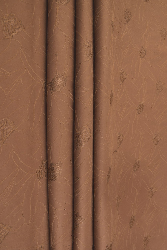 Коричнева, злегка еластична бавовна з вишивкою квітковим візерунком. Одяг з нього відмінно підійде для спекотних днів. Ми рекомендуємо його для пошиття суконь, спідниць або в якості декоративної тканини.