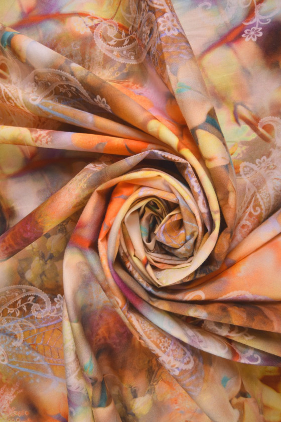 Італійська бавовна 100% натуральна в теплих жовтих і помаранчевих кольорах. Пропозиція з пошиття літніх суконь, спідниць, штанів.