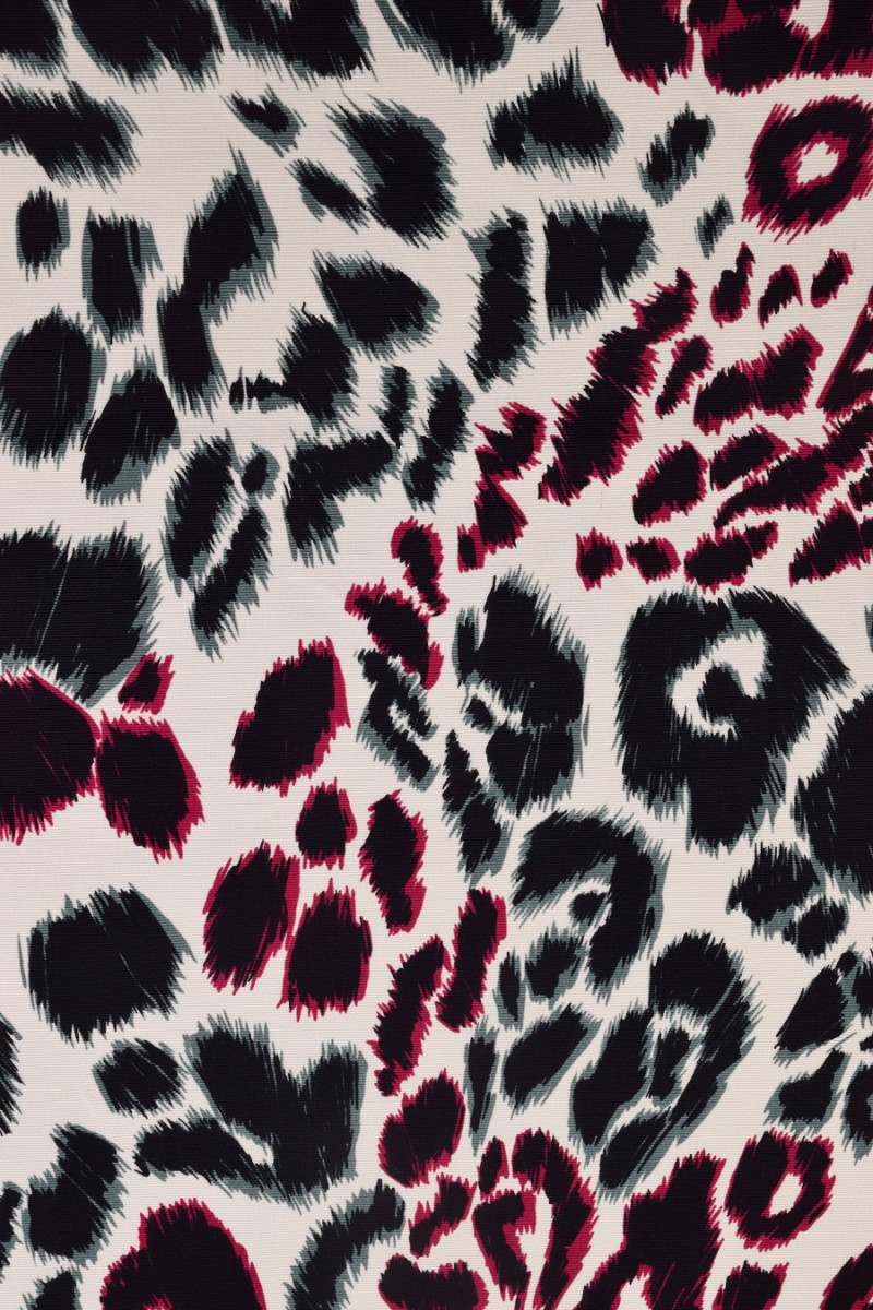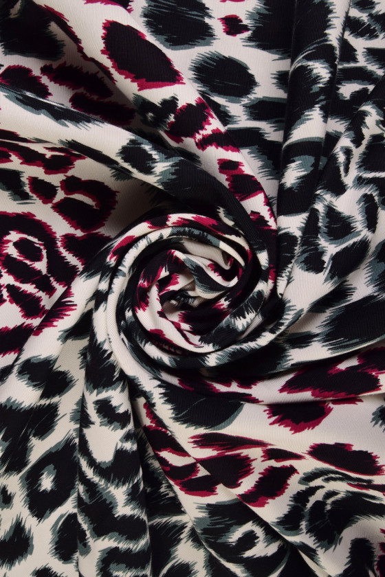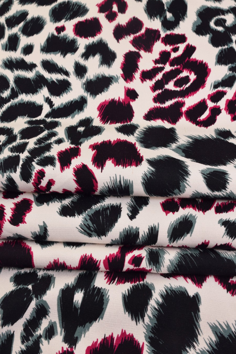 Більш щільна тканина гросгрейн з великим, барвистим леопардовим принтом - на чорному тлі з зеленим і червоним екрю пантера. Ми рекомендуємо його для пошиття спідниць, жакетів, курток, пальто. Стійка тканина.