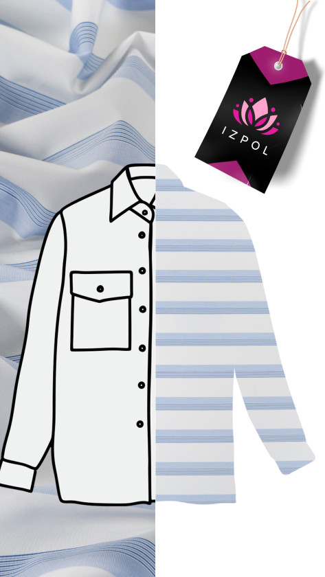 Італійська бавовняна сорочка кремового кольору з мотивом синіх смужок, шириною 2 см. Чи не еластична, злегка жорстка тканина - відмінно підійде для пошиття сорочки, блузки, сукні.