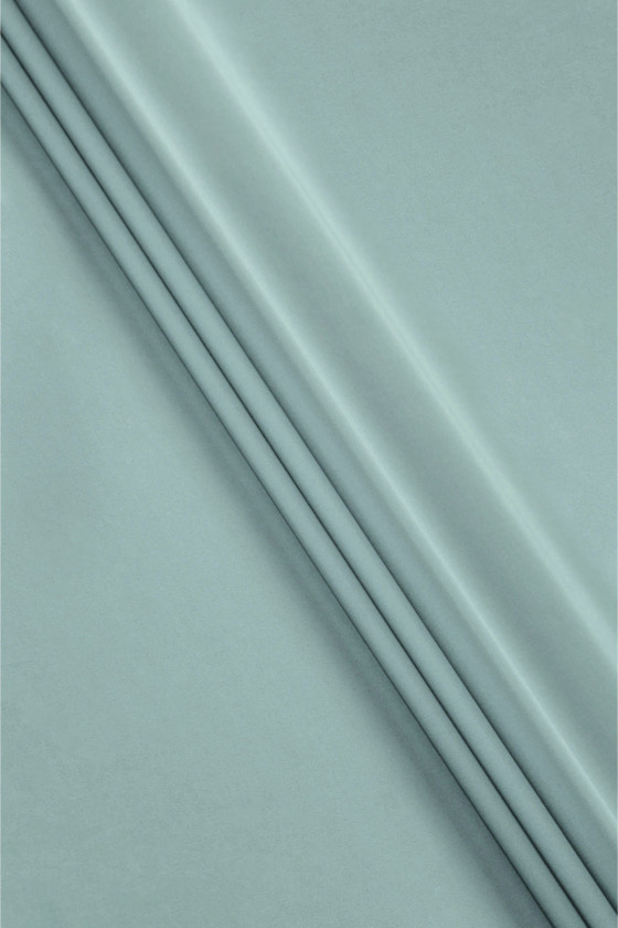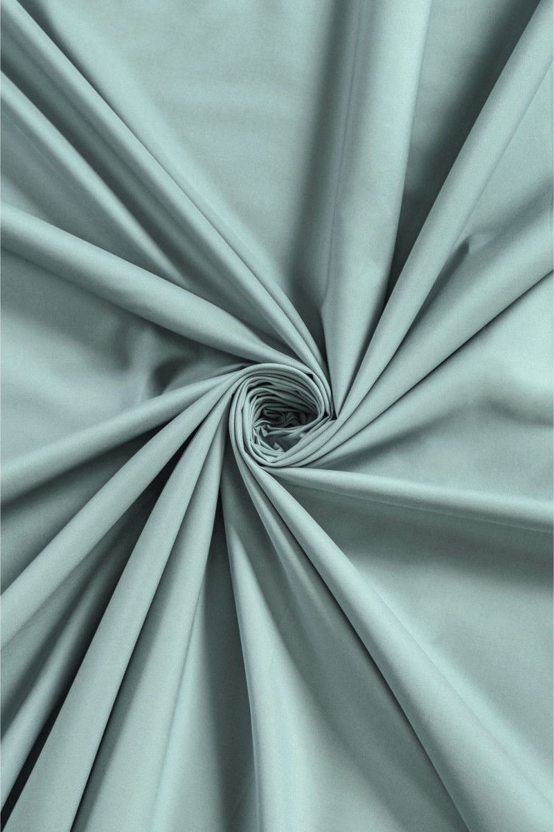 Італійська бавовняна тканина з додаванням еластану сіро-зеленого кольору. Еластична тканина середньої товщини і гладкого, ніжно блискучого переплетення, призначена для пошиття сукні, спідниці або брюк. Натуральна тканина дуже хорошої якості, додавання еластану робить її більш комфортною у використанні і менше мнеться. Незамінна тканина навесні і влітку.