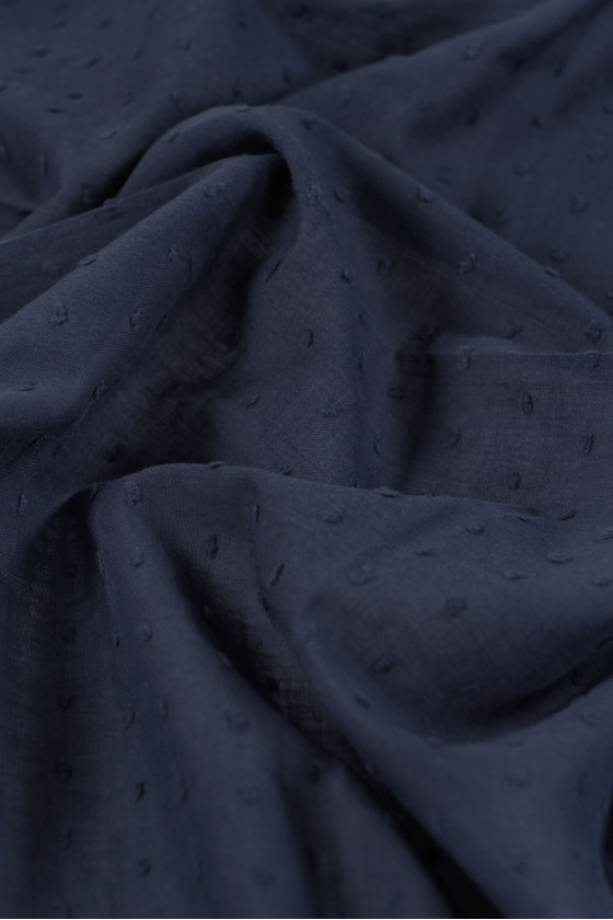 Італійська тканина батист зі 100% бавовни темно-синього кольору з мотивом «вузлики». Батист з бавовни - натуральна, ніжна, повітряна, злегка прозора тканина - ідеально підходить для літньої спеки. Відмінно підійде для пошиття блузки, спідниці, сукні.