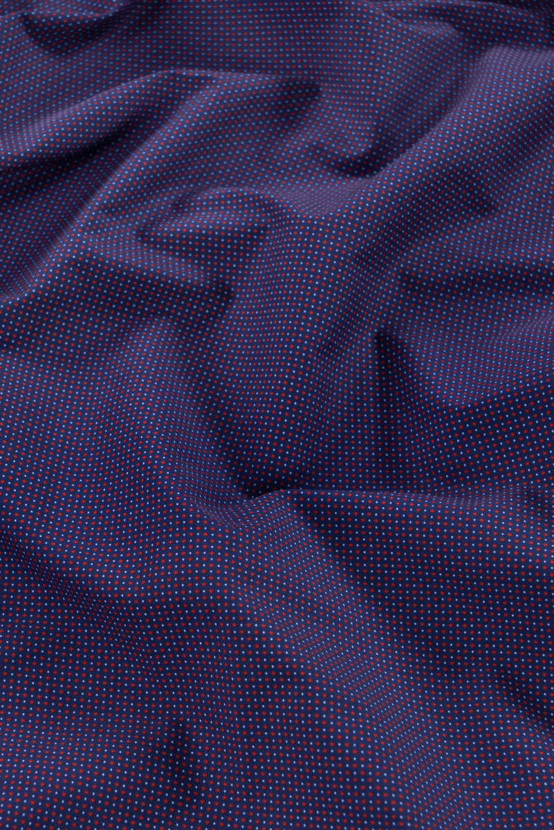 Італійська сорочка бавовняного кольору темно-синього кольору з дуже дрібним червоно-білим візерунком. Бавовна - це 100% натуральне волокно.