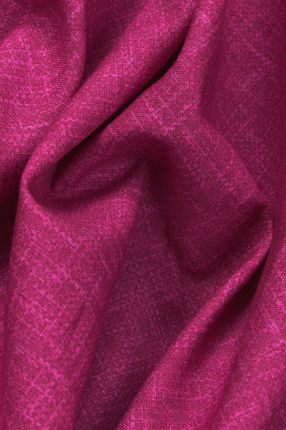 Італійська тканина зі 100% бавовни кольору фуксії з малюнком, що нагадує структуру джинсової тканини. Бавовна - це 100% натуральне волокно. Бавовняні тканини довговічні, швидко не зношуються, довго зберігають свої властивості, відмінно пропускають повітря, пропускають повітря, що дає високий комфорт використання. Нееластична, матова, непрозора тканина - відмінно підійде для пошиття сукні, брюк, спідниці або шортів.