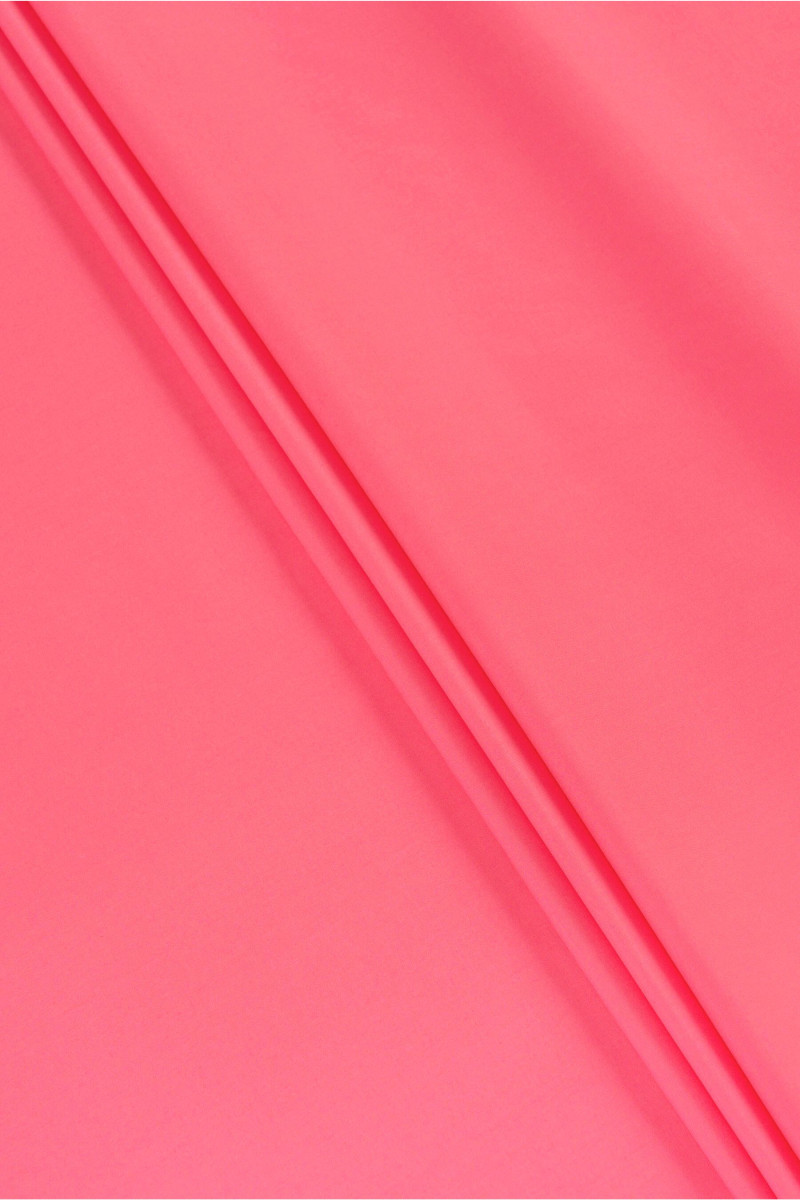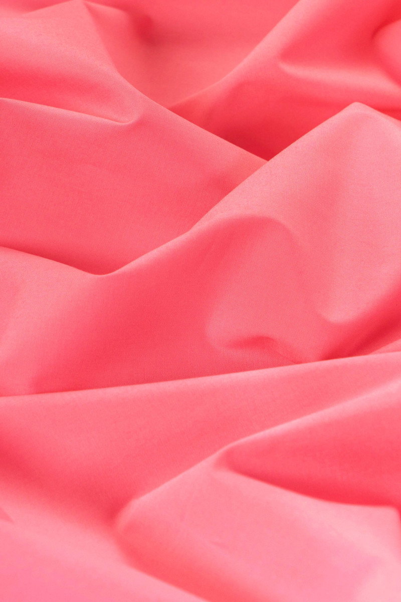 Італійська бавовняна тканина з додаванням еластану в цукерково-рожевому кольорі. Еластична тканина середньої товщини і злегка саржевого, матового переплетення, призначена для пошиття сукні, спідниці або штанів. Натуральна тканина дуже хорошої якості, додавання еластану робить її більш комфортною у використанні і менше мнеться. Незамінна тканина навесні і влітку.