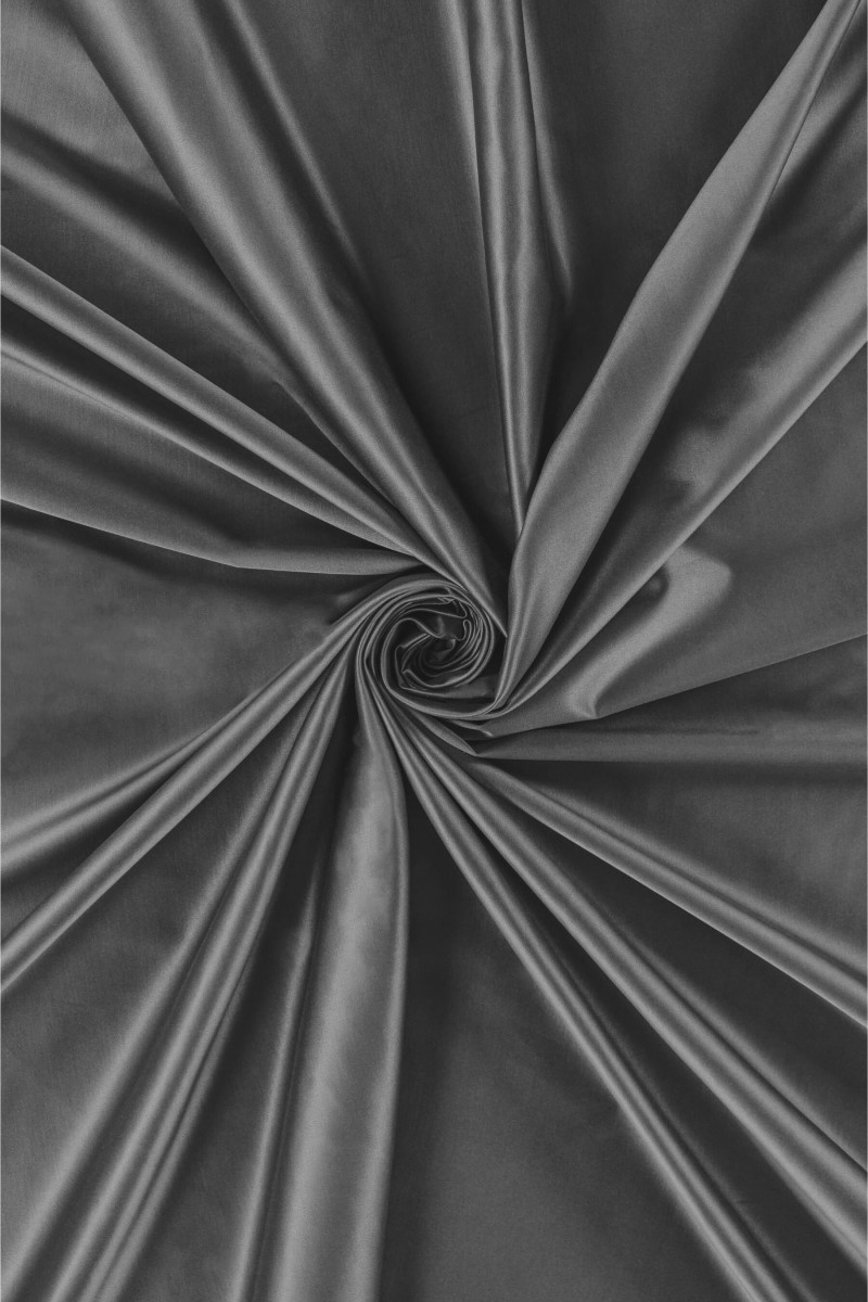Італійська бавовняна тканина з додаванням поліестеру та еластану сталевого сірого кольору. Еластична тканина із середньою товщиною і гладким, атласним переплетенням, призначена для пошиття сукні, спідниці або штанів. Натуральна тканина дуже хорошої якості, додавання поліестеру та еластану робить її більш комфортною у використанні та менше мнеться. Незамінна тканина навесні і влітку.