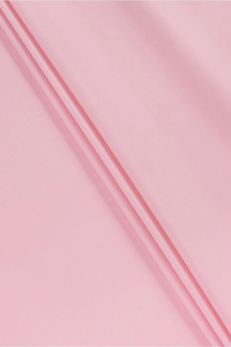 Італійська бавовняна тканина з додаванням еластану пильно-рожевого кольору. Еластична тканина середньої товщини і гладкого, ніжно блискучого переплетення, призначена для пошиття сукні, спідниці або брюк. Натуральна тканина дуже хорошої якості, додавання еластану робить її більш комфортною у використанні і менше мнеться. Незамінна тканина навесні і влітку.
