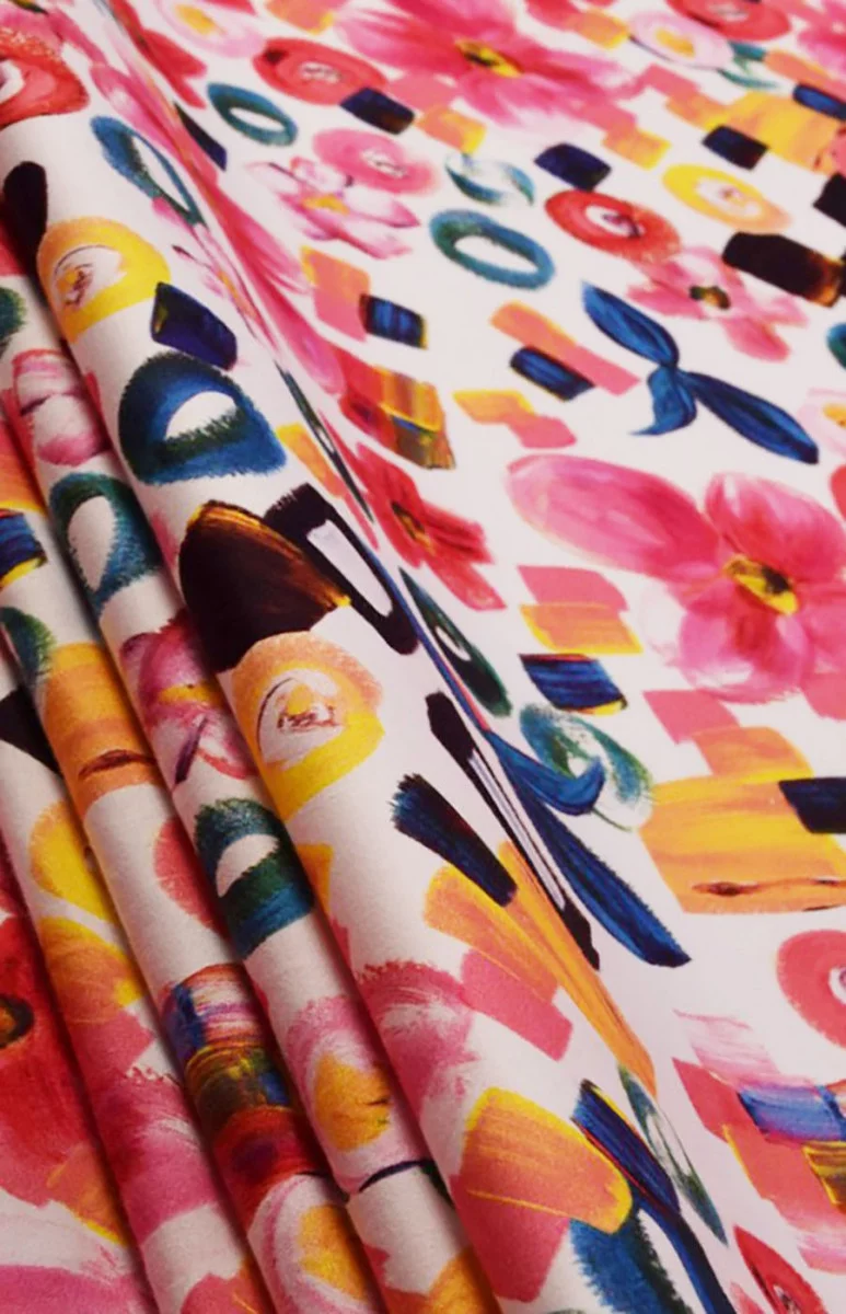 Красива бавовна з малюнком. Тканина середньої товщини, злегка еластична. Ідеально підходить для суконь, штанів, весняних комплектів.