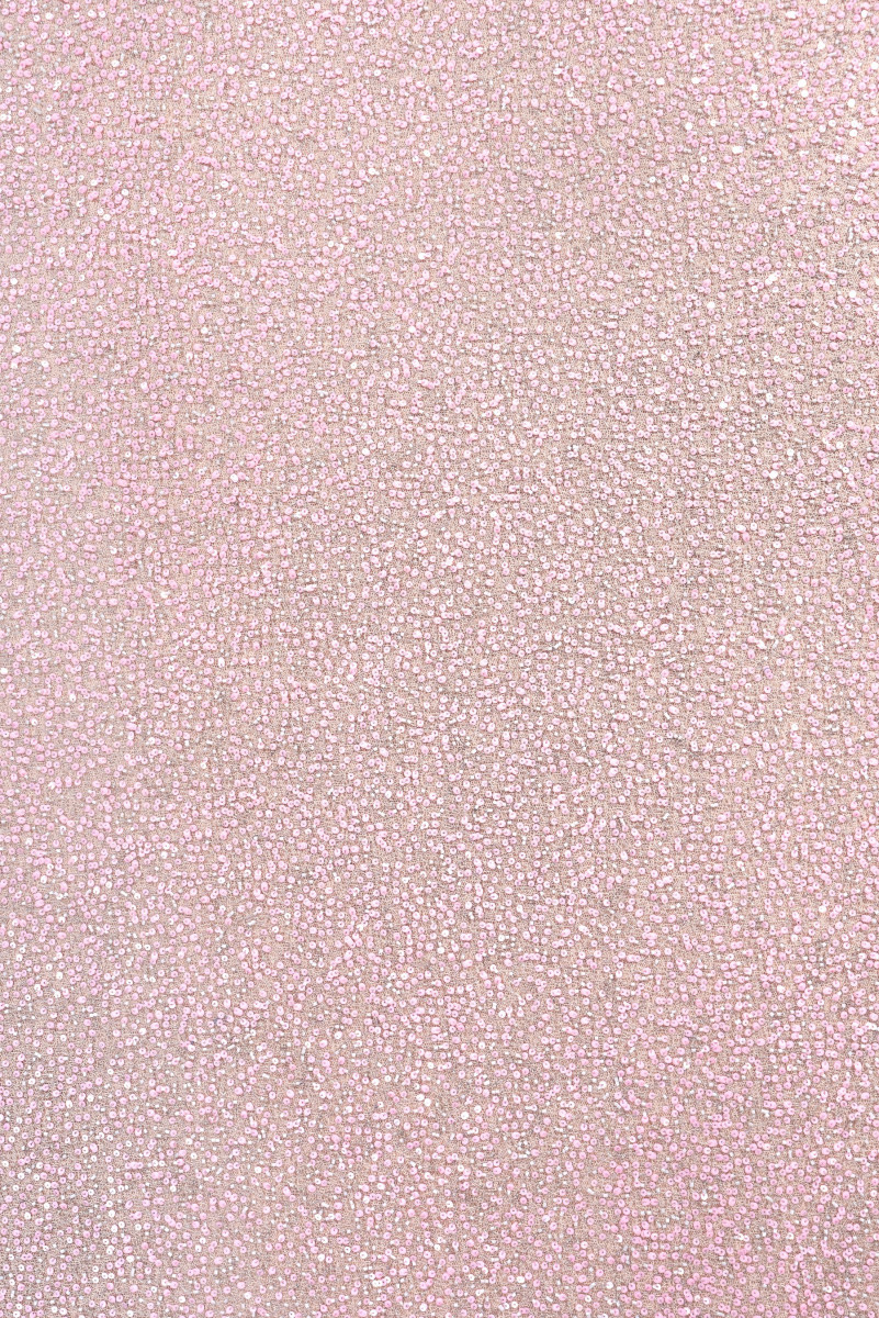 Італійська тканина (сітка) світло-рожевого кольору, багато прикрашена білим і прозорим бісером і матовими рожевими паєтками, вся обшита сріблястою люрексовою ниткою. Тканина прозора (вимагає підкладки), щільна, злегка еластична. Фантастична і дуже ефективна пропозиція для пошиття вечірньої сукні, спідниці або блузки.