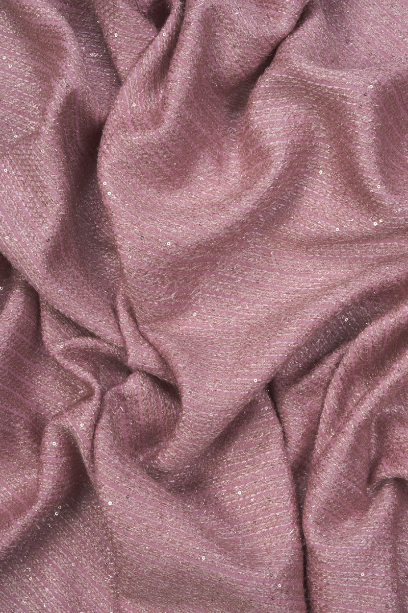 Італійська костюмна тканина Шанель брудно-рожевого кольору. Гладка тканина з горизонтальною строчкою шириною 1 см, прикрашена дрібними паєтками. Тканина середньої товщини, що не еластична, м'яка. Відмінно підійде для пошиття сукні, спідниці або в декоративних цілях.