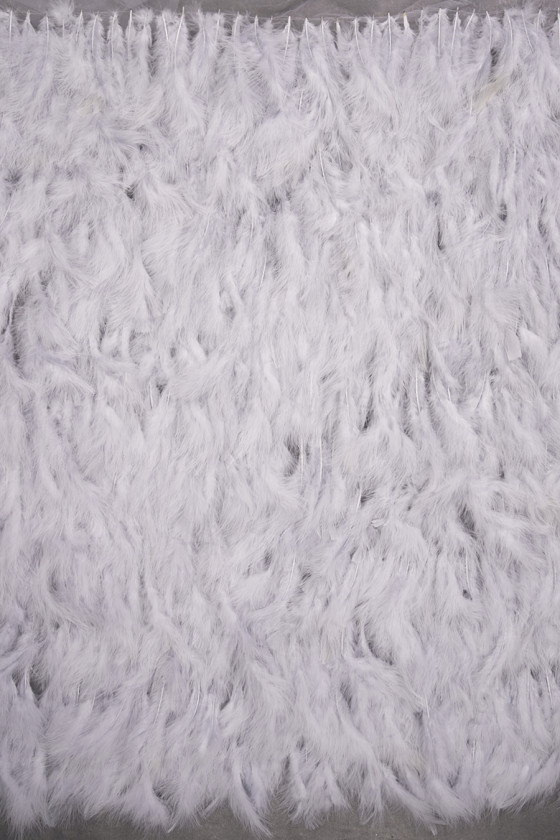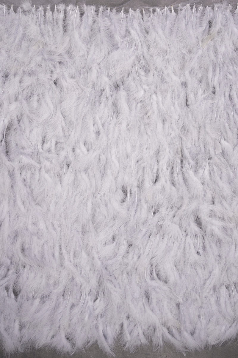 Феноменальна вечірня тканина сірого кольору - сітка густо оброблена пір'ям півня довжиною близько 15 см - прошиваємо по колу. Злегка прозора тканина шириною 115 см, пір'я м'яке і пухнасте - прекрасна пропозиція для пошиття вечірньої сукні, блузки, спідниці або для обробки інших тканин.