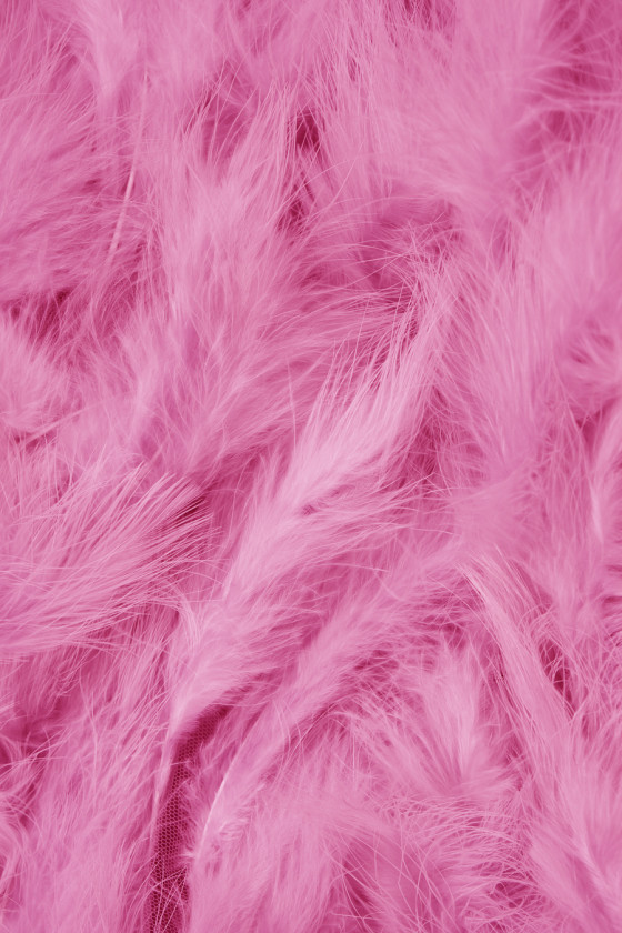 Феноменальна вечірня тканина темно-рожевого кольору/фуксії - сітка густо обшита півнячим пір'ям довжиною близько 15 см - пришиваємо по колу. Злегка прозора тканина шириною 115 см, пір'я м'які і пухнасті - прекрасна пропозиція для пошиття вечірньої сукні, блузки, спідниці або для обробки інших тканин.