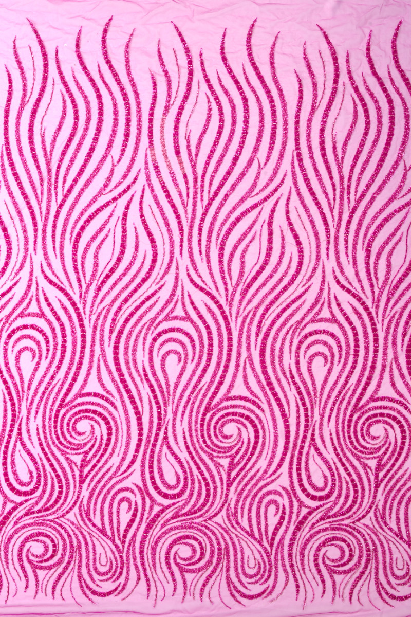 Італійська вечірня тканина кольору фуксії. Жорсткий тюль такого ж кольору рясно прикрашений бісером і паєтками, які розташовані у вигляді хвиль. Вони товщають у напрямку до одного краю тканини - прошиваємо по колу. Фантастична пропозиція для пошиття вечірньої сукні в наймоднішому кольорі. Тканина для людей, які стежать за останніми модними тенденціями.