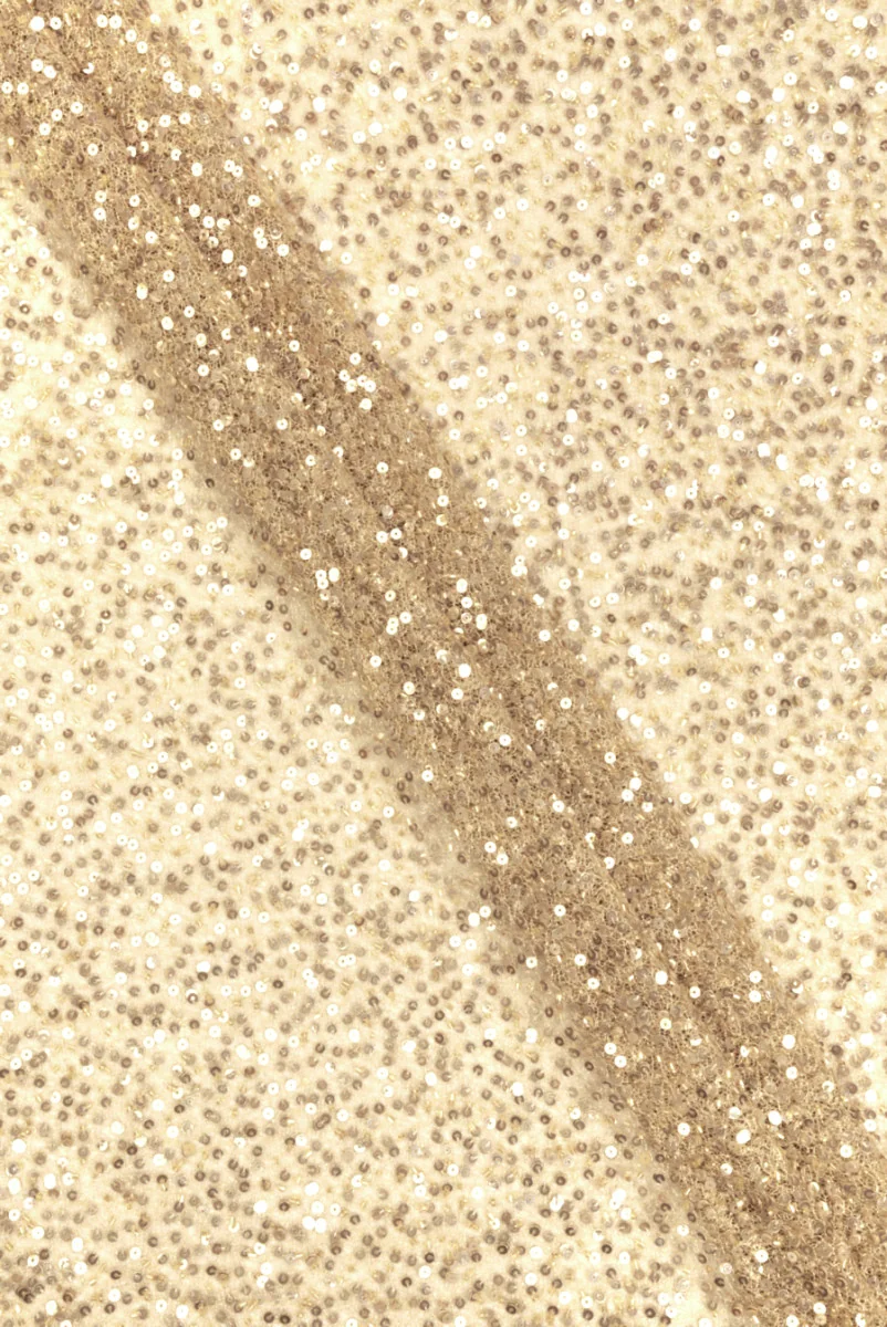 Італійська тканина у формі сітки з неправильними сітками світло-бежевого кольору, багато прикрашена намистинами та паєтками того ж кольору. Тканина прозора (потребує підкладки), досить важка, трохи еластична, а намистини та паєтки чудово сяють. Фантастична і дуже ефективна пропозиція для шиття вечірньої сукні, спідниці, блузки.