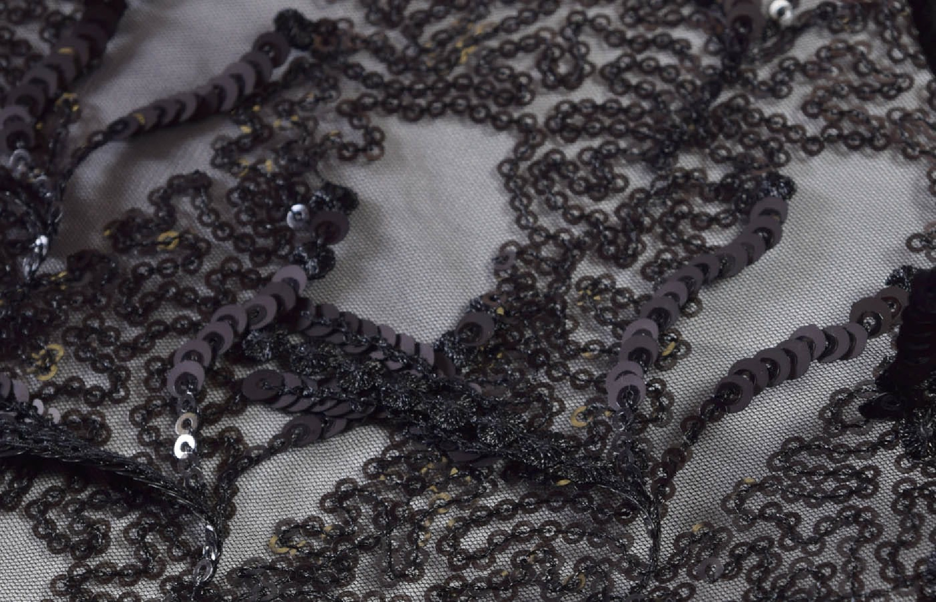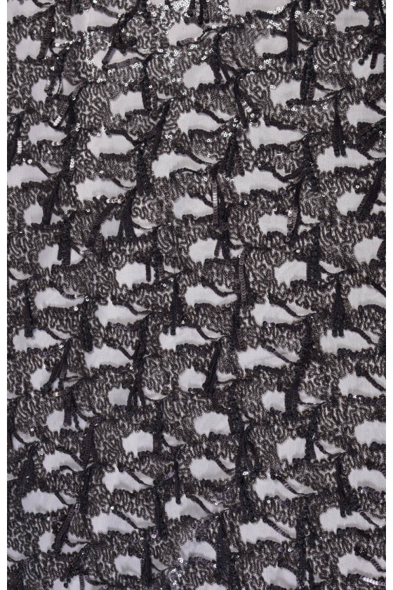 Паєтки, вишиті на фатину. Додатково вони прикрашені пензликами з паєток довжиною близько 4 см. Ідеально підходить для танців і новорічних суконь.