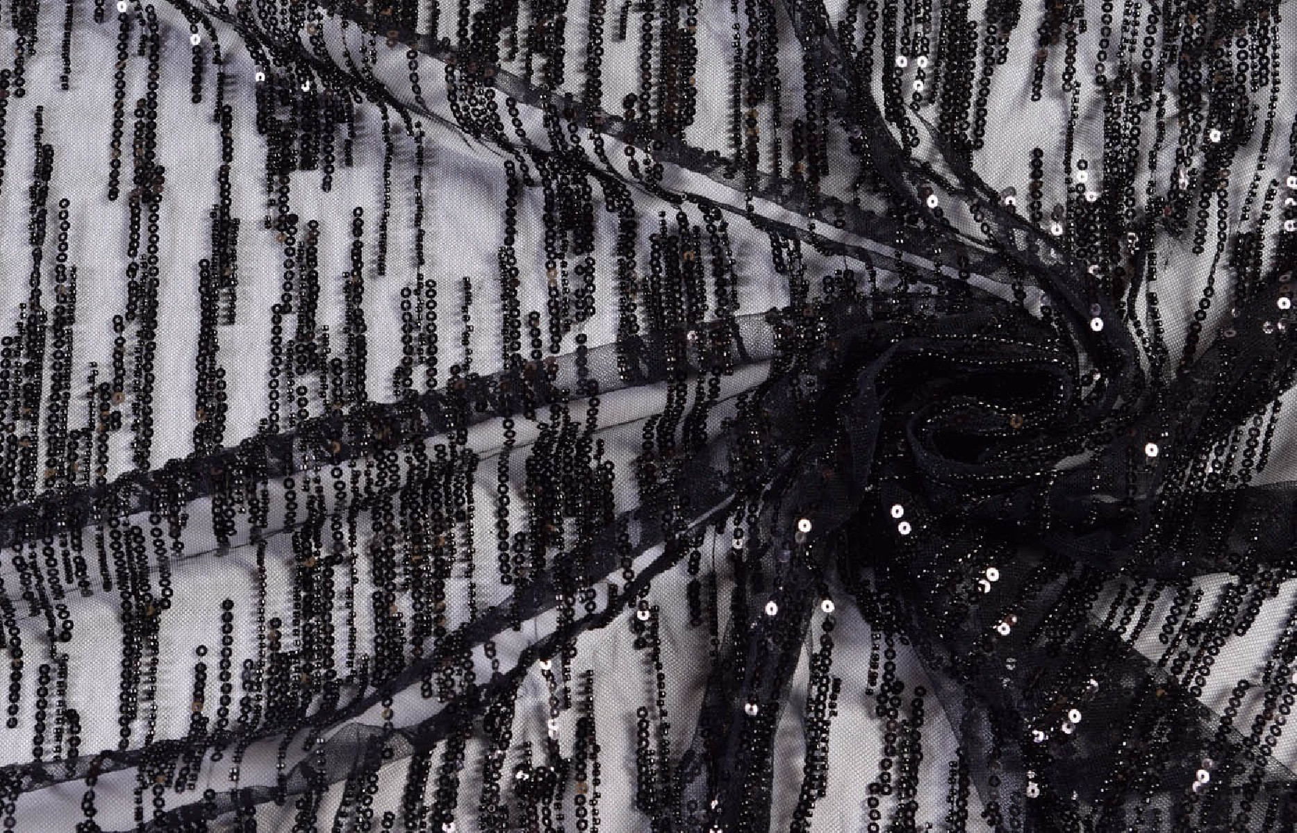 Феноменальна тканина чорного кольору для вечірніх суконь. Вишиваємо бісером, паєтками. Тканина може бути пришита як на чорній підкладці, так і, наприклад, в нюдовому кольорі