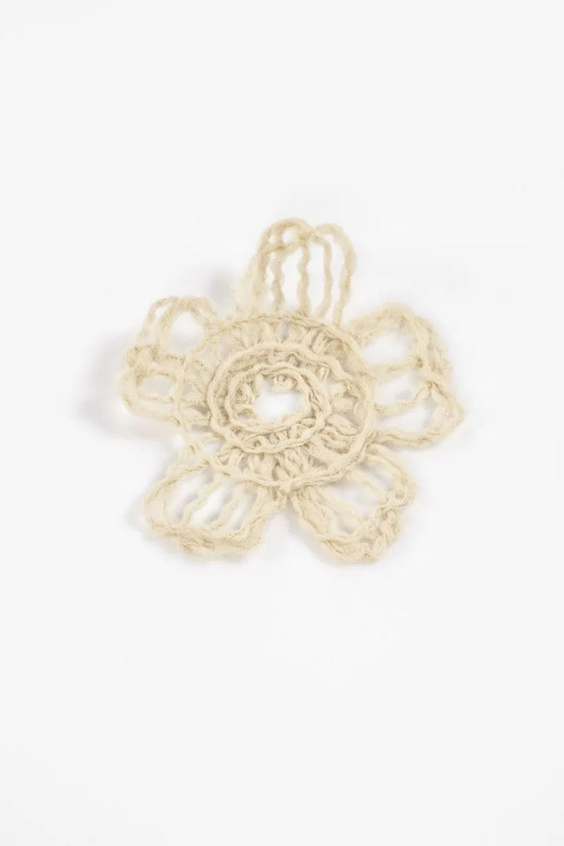 Італійська квіткова аплікація бежевого кольору, виконана з натуральної вовни. Ширина: 12 см.