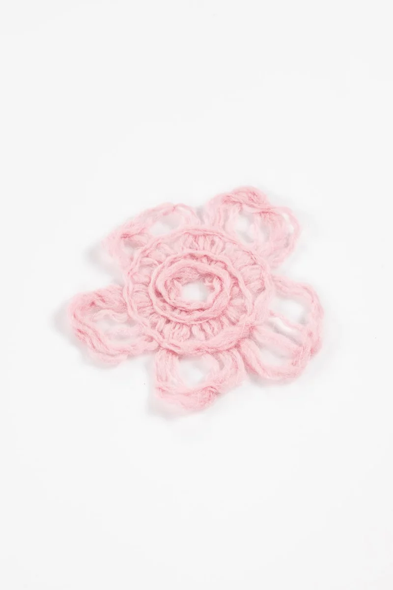 Італійська квіткова аплікація в рожевому кольорі, виконана з натуральної вовни. Ширина: 15 см.