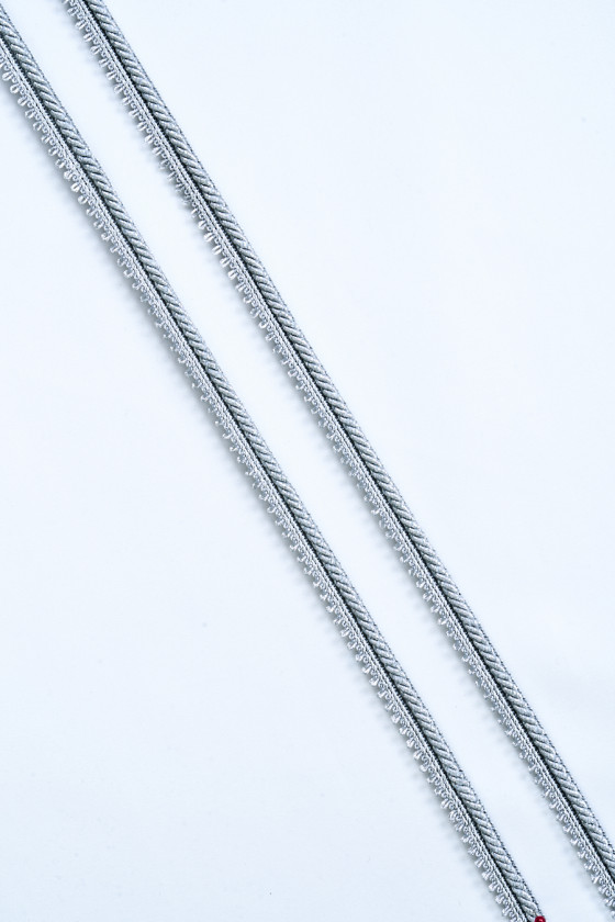 Італійська галантерейна стрічка шириною 1,3 см. Стрічка виготовлена з двох видів срібного шнура. Ідеальне завершення елегантного жакета або сукні.