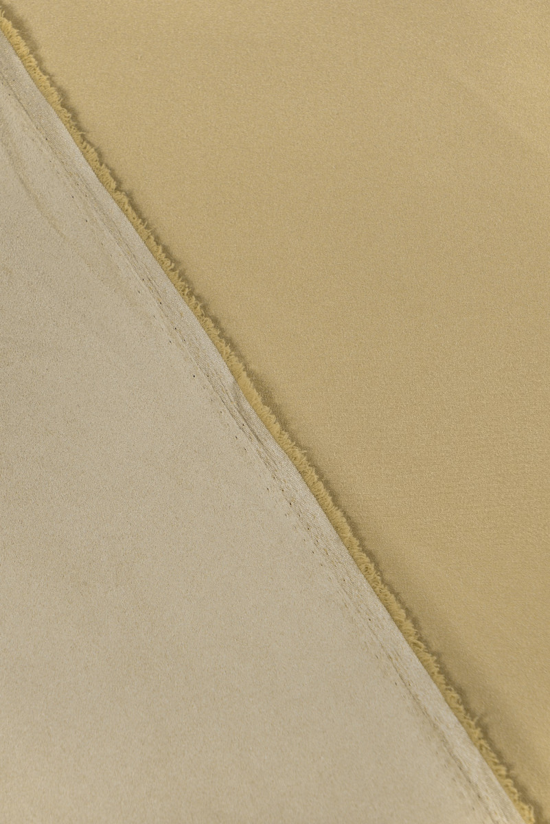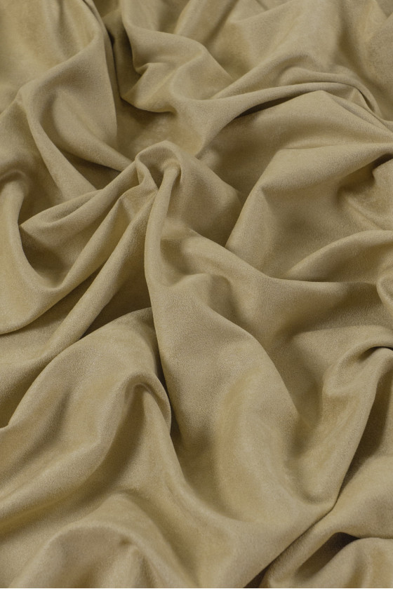 Італійська, еластична тканина алькантара світло-бежевого кольору. Алькантара - це синтетична тканина з мікрофібри (мікроволокна, до 20 разів тонше людської волосини), на вигляд і на дотик нагадує замшу. М'яка, тонка, еластична тканина - відмінно підійде для пошиття сукні, спідниці або вузьких штанів.