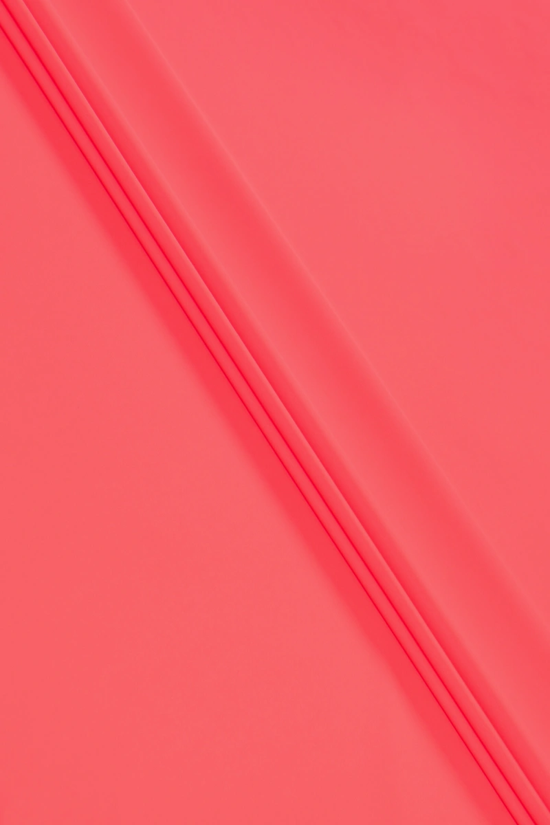 Італійська тканина каді червоного, світло-корала. Двостороння тканина - матова з одного боку, з переплетенням, що нагадує жоржет, з іншого гладка з ніжним, елегантним блиском (напівматова)