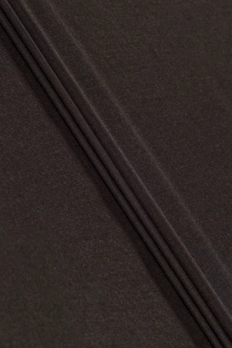 Італійська костюмна вовна чорно-коричневого кольору з дрібним картатим мотивом. Тонка, м'яка, нееластична тканина класичної товщини.