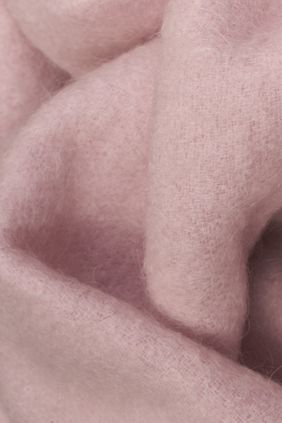 Італійська пропарена шерсть рожевого кольору осінньо-зимового виду, сплетена з вовни і мохеру з додаванням поліаміду. Тканина більш щільна, тепла, призначена для пальто, курток, жилетів, а також для зимових, теплих спідниць. Рекомендується хімчистка.