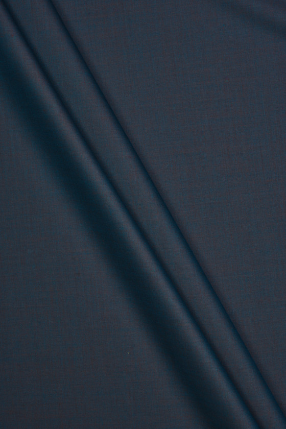 Італійська костюмна тканина, виткана з 100% вовни з двох кольорів ниток - бірюзового і коричневого, унікальна створює двоколірний. Щільно сплетене полотно, тонке, нееластичне, м'яке, ніжне на дотик і матове. Красива, класична пропозиція для костюмів, суконь, спідниць.
