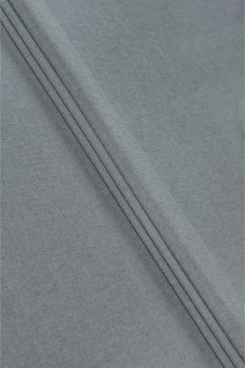 Італійська костюмна тканина, виткана з 100% натуральної вовни меланжевого сірого кольору. Тканина з гладким переплетенням і середньою товщиною. Вона м'яка, еластична і матова. Ідеально підходить для класичного одягу, такого як сукні, спідниці, штани, блейзери та жакети.