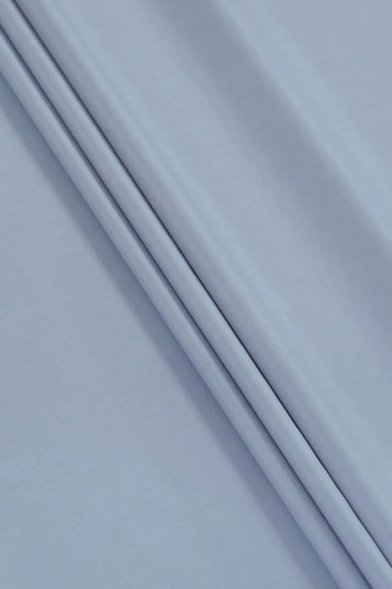 Італійська костюмна тканина, виткана з 100% натуральної вовни в сіро-блакитному кольорі. Тонка, але непрозора тканина з гладким переплетенням. Вона м'яка, нееластична і матова. Ідеально підходить для класичного одягу, такого як сукні, спідниці, штани, блейзери, жакети та костюми.