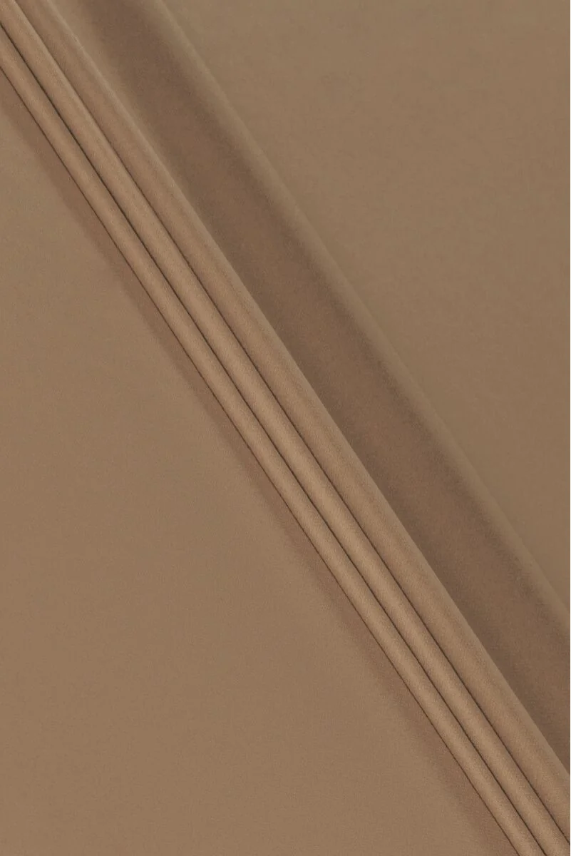 Італійська костюмна тканина з натуральної вовни з додаванням поліаміду в темно-оливковому бежевому. Матеріал має легку сарлу, середньої товщини і за видами нагадує фланелеву тканину. Він ідеально підходить для пошиття осіннього та зимового одягу, такого як сукня, спідниця або штани. Чудова пропозиція для тих, хто цінує якісні види тканин.
