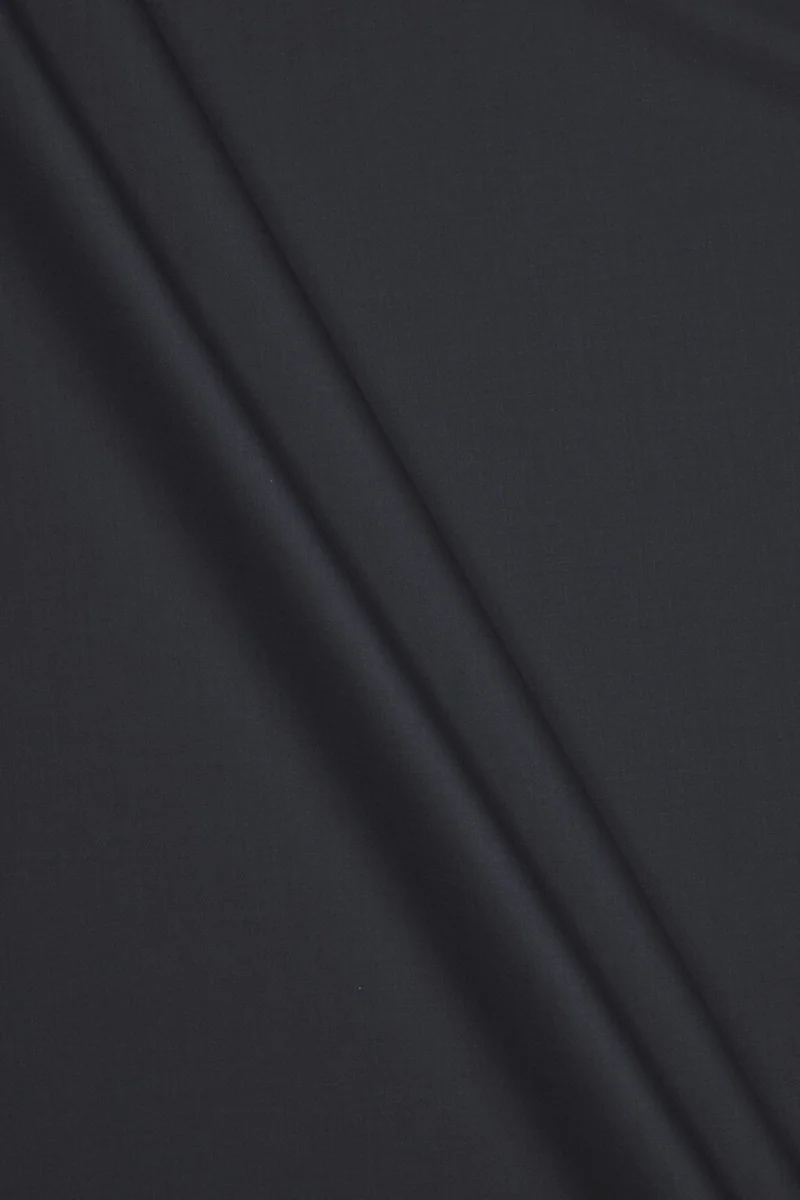 Італійська костюмна тканина з 100% вовни, більш природного кольору темно-синього кольору. Тканина не еластична, середньої товщини з гладким, трохи блискучим переплетенням. Він ідеально підходить для шиття класичного костюма, сукні, спідниці або штанів. Природна тканина для тих, хто любить класичні кольори.