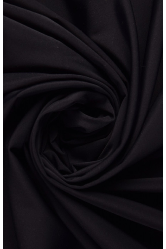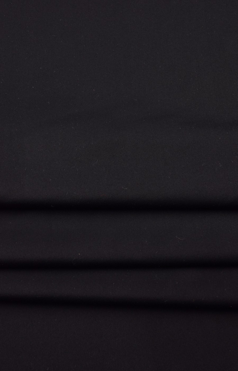 Італійське еластичне трикотажне полотно типу лайкра чорного кольору. Тканина з щільним плетінням і гладкою, матовою структурою, дуже еластична - ідеально підходить для людей, які люблять облягаючий одяг і позачасові кольори. Він ідеально підходить для підкладки, наприклад, мережива, а також для пошиття нижньої білизни, оскільки він зручний і швидко сохне.