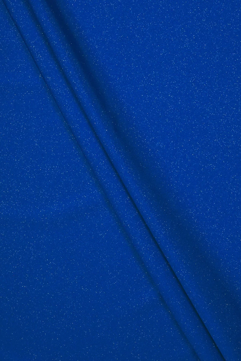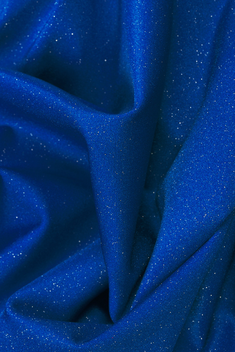Італійське еластичне трикотажне полотно з лайкри волошкового кольору з сріблястим блиском (не звалюється). Тканина з щільним, щільним плетінням, дуже еластична - ідеальний варіант для людей, яким подобається облягаючий одяг. Він ідеально підходить для пошиття танцювального або вечірнього одягу, а також купальників, оскільки він зручний, красиво блискучий і швидко сохне.