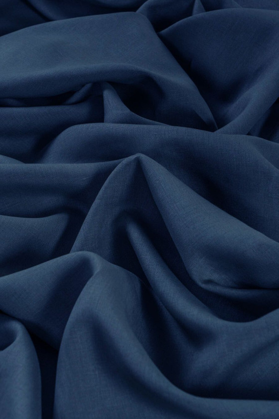 Італійська 100% лляна тканина темно-синього кольору. Льон є екологічною тканиною, він виготовляється з рослинних волокон. Це змушує його повністю розкладатися, саме тому лляні тканини безпечні для навколишнього середовища. Тканина відмінно підійде для пошиття сорочки, сукні, спідниці, штанів.