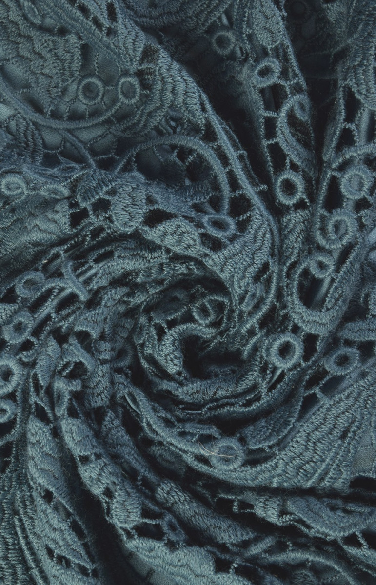 Останній купон гіпюрового мережива бірюзового кольору з розмірами: 75 см*120 см.