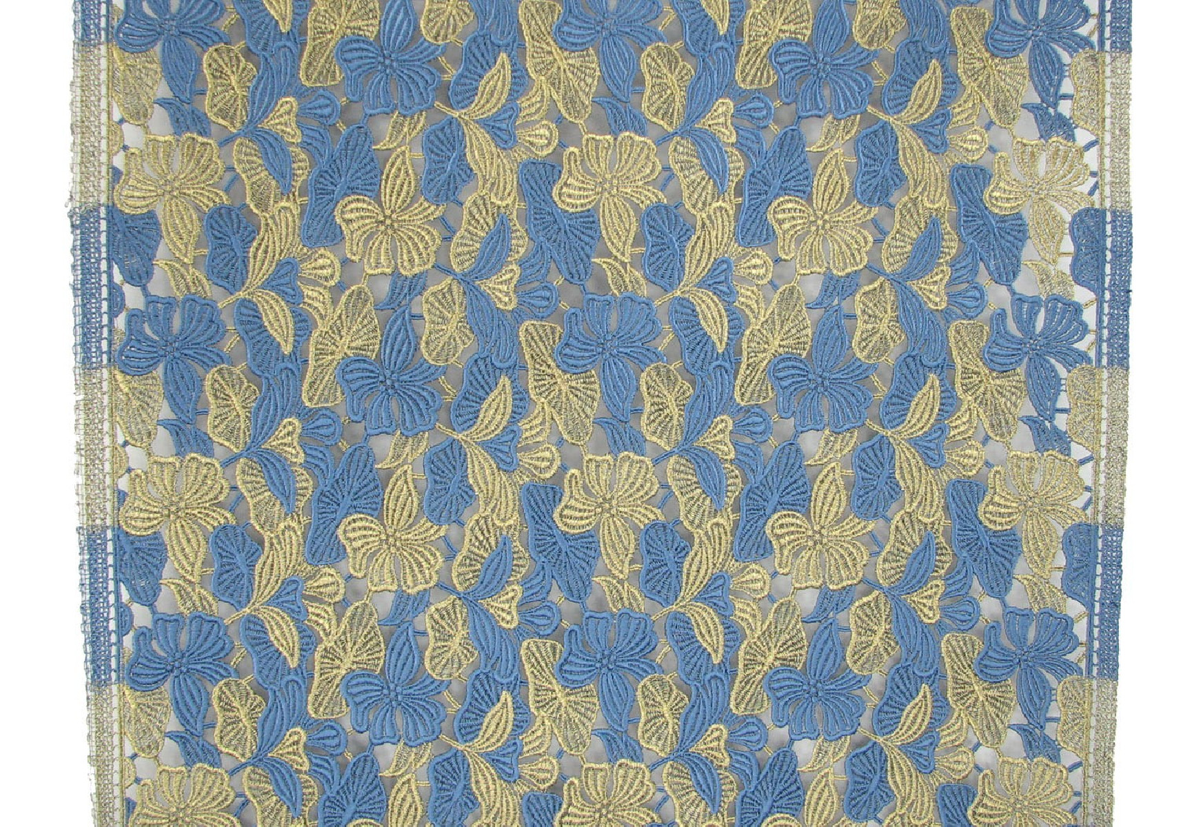 Гіпюрове мереживо золотисто-блакитне вузьке