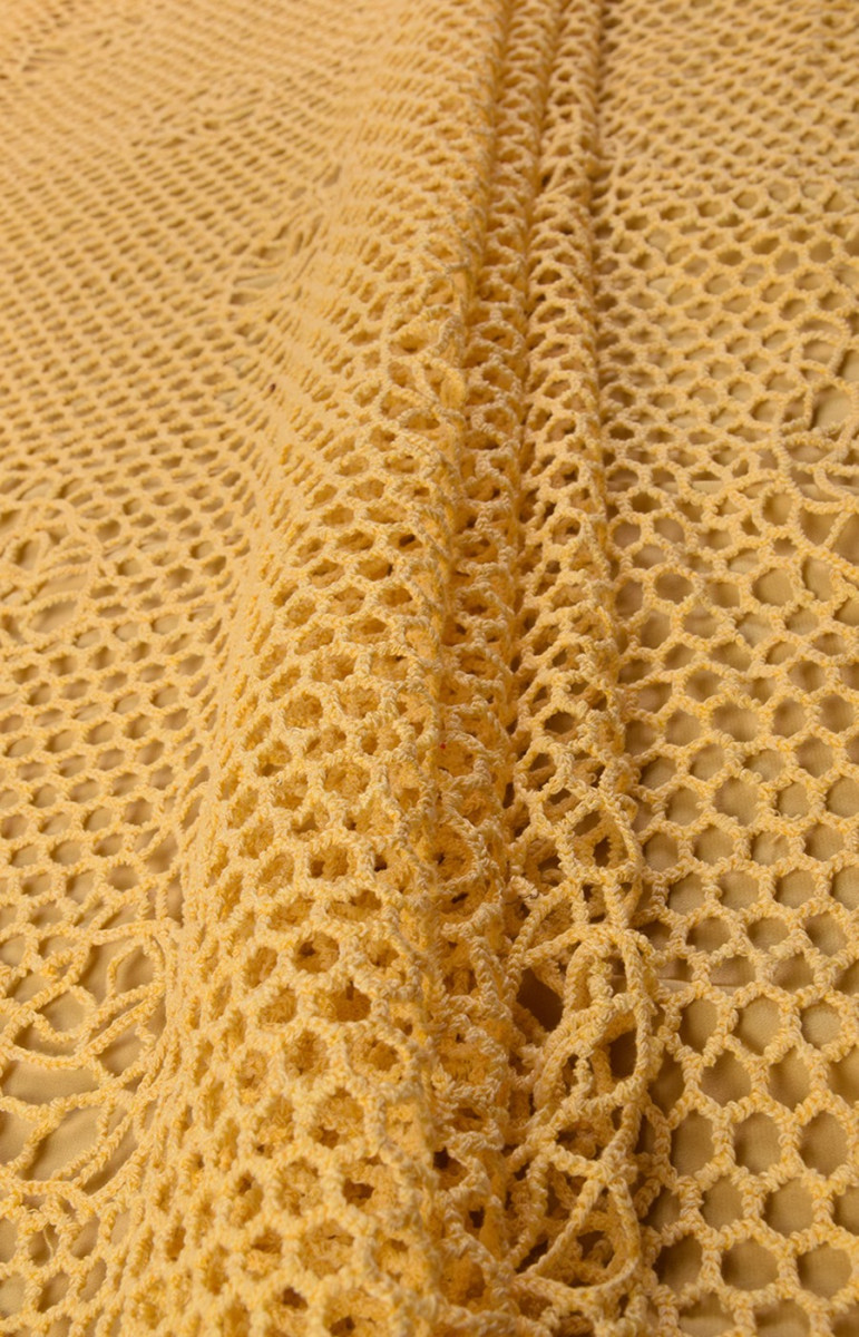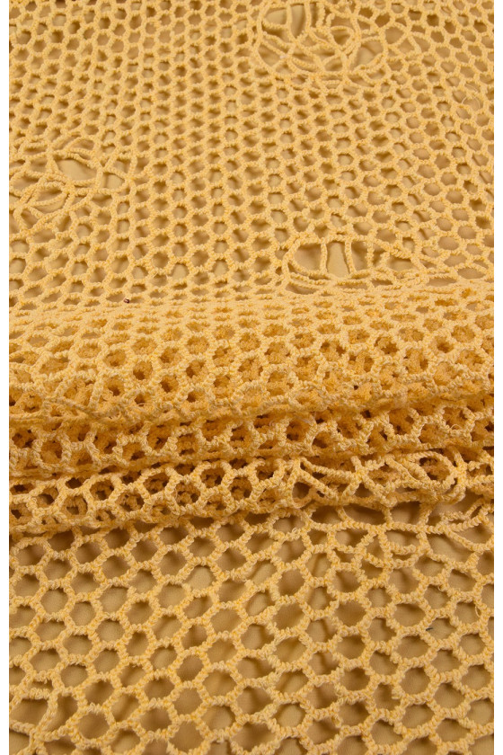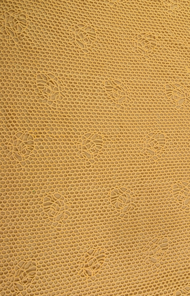 Мереживо світло-жовтого кольору з сітчастим переплетенням з квітковим візерунком. Ми рекомендуємо його для пошиття ретро-суконь, блуз або шарфів і шалей.