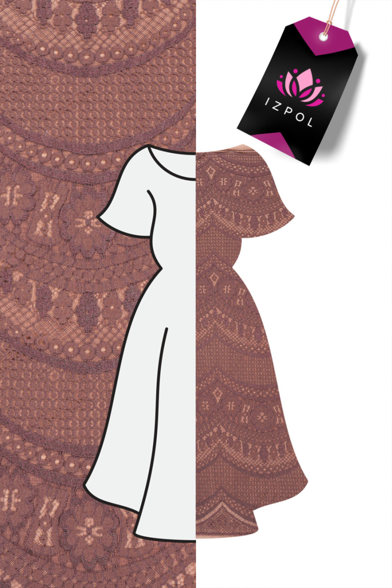 Красиве французьке мереживо бордово-коричневого кольору. Дуже цікавий мотив хвиль і квітів. Мереживо вузьке (шириною 90 см), візерунок відбувається по колу. Оброблені з двох сторін зубом - для самостійного висічення.