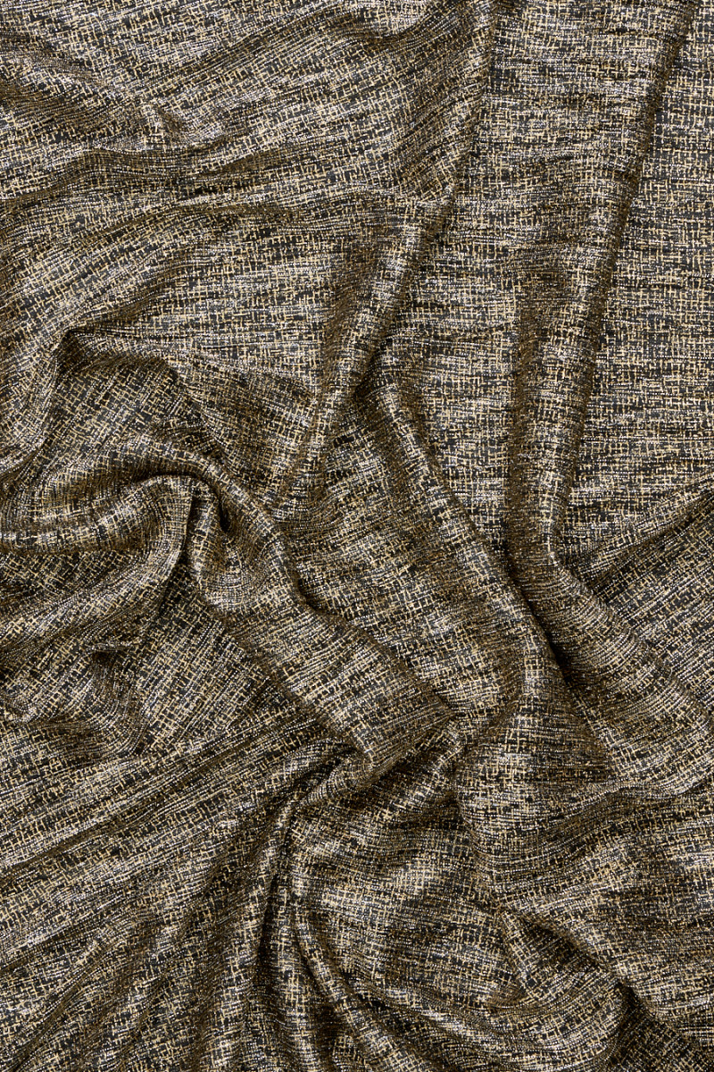Вражаюча тонка плісирована тканина золотого і чорного кольору з вплетеною в неї блискучою ниткою люрексу.