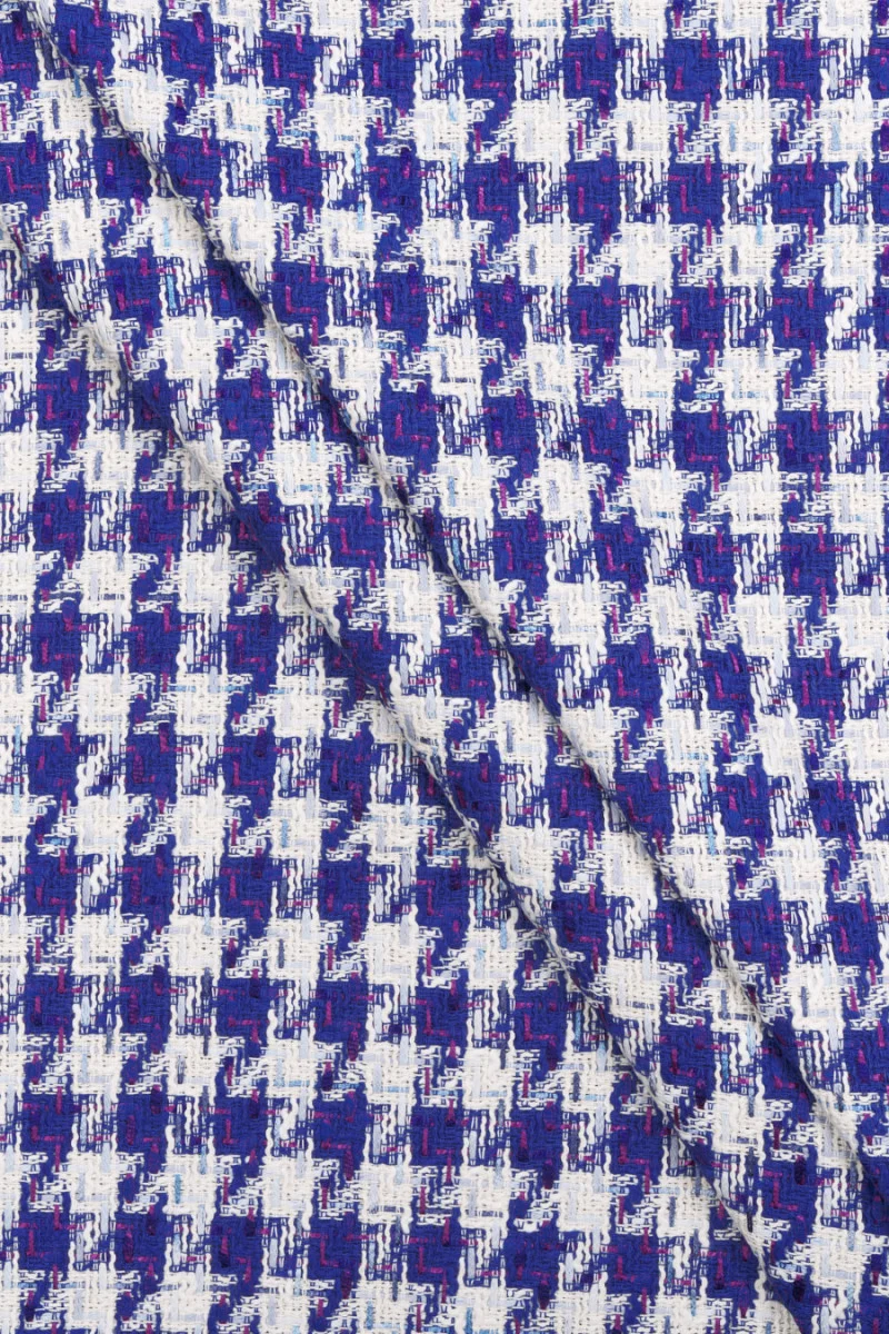 Італійська костюмна тканина Шанель світло-темно-синього і кремового кольору, прикрашена мерехтливою ниткою кольору фуксії / рожевого.