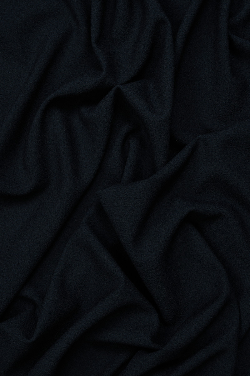 Італійська тканина з жоржетним переплетенням темного темно-синього кольору з додаванням еластану. Тканина м'яка, еластична, матова і має ніжне жоржетне переплетення. Класична пропозиція, з якої ви можете створювати сукні, спідниці, жакети та костюми.