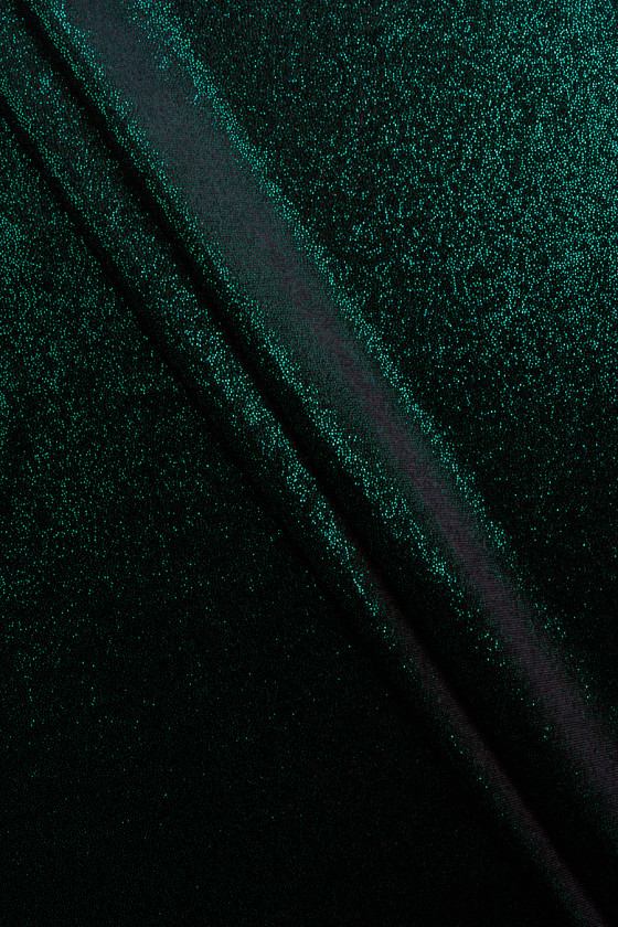 Вечірній велюр в чорно-зеленому кольорі. Тканина еластична і зіткана з матових і блискучих ниток, що дає гарний ефект ніжного мерехтіння (схоже на ніжний гліттер). Він ідеально підходить для пошиття вечірніх і вечірніх нарядів, таких як сукні, спідниці, штани або костюми. Також рекомендуємо його для пошиття нарядів для бальних танців або танго.