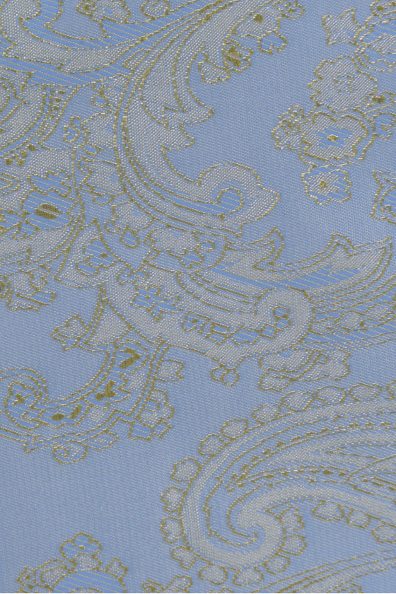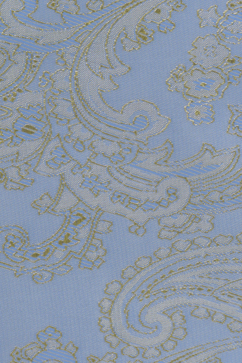 Італійська жакардова підкладка зі східним мотивом - жовто-блакитний двоколірний. Тканина нееластична, злегка блискуча. Ідеально підходить для підкладки пальто, курток, жилетів, курток.