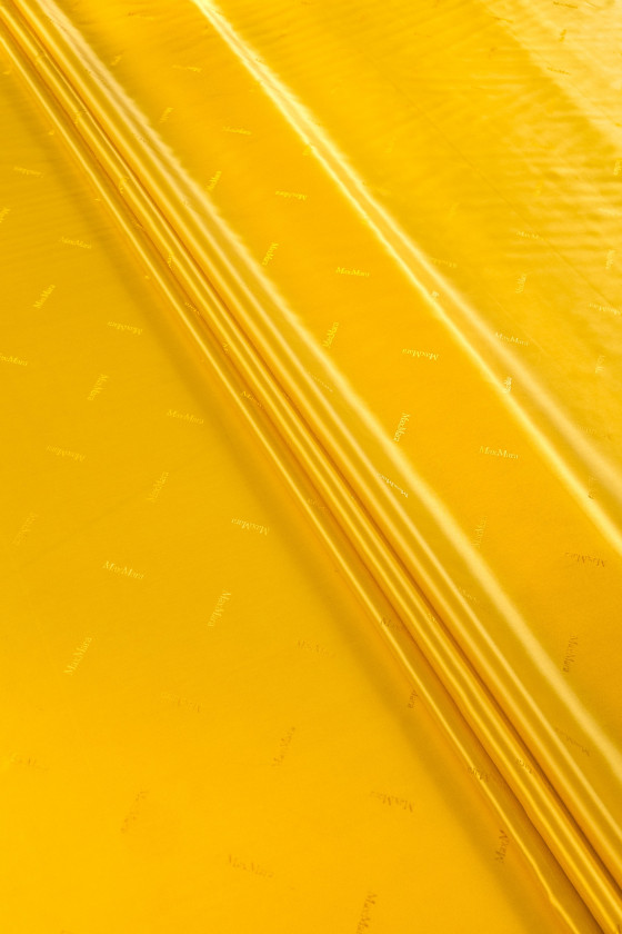 Італійська підкладка з віскози жовтого кольору, підписана назвою відомого Модного Дому. М'яка тканина з гладким переплетенням, з легким блиском. Ідеально підходить для підкладки костюма, піджака, піджака або пальто.