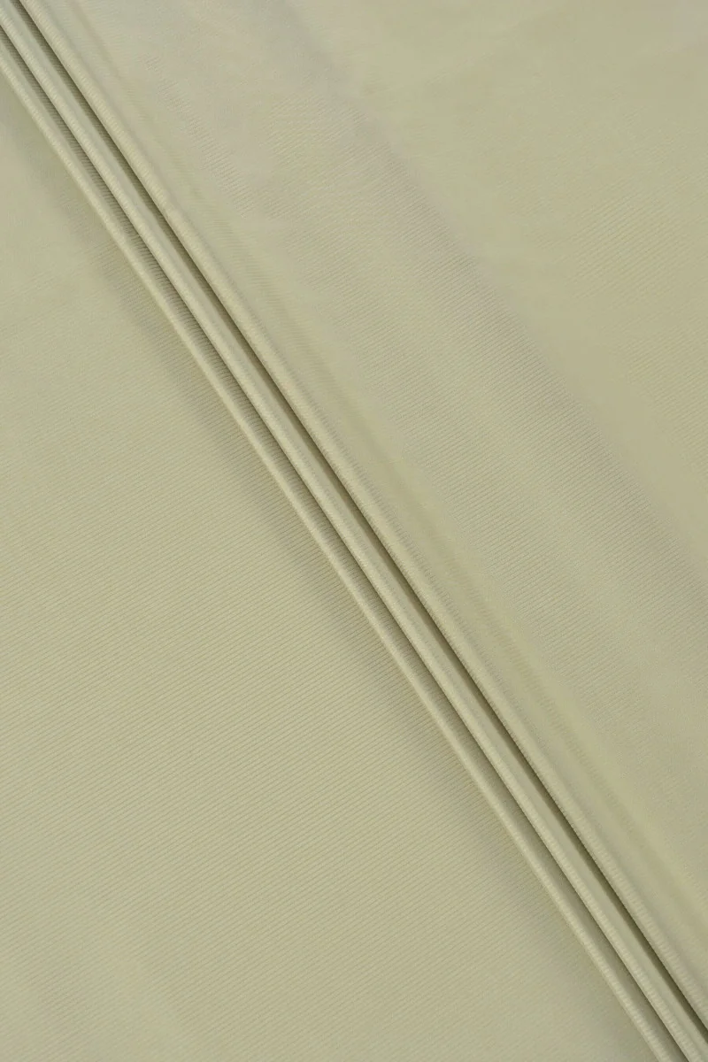 Італійська підкладка 100% ацетату з твіловим переплетенням. Тканина виготовлена з двох кольорів ниток: уток синього та основа золотисто-бежевого, створюючи двоколірний ефект. Матеріал нееластичний середньої товщини. Він ідеально підходить для підкладки піджака, спідниці, пальта або піджака.