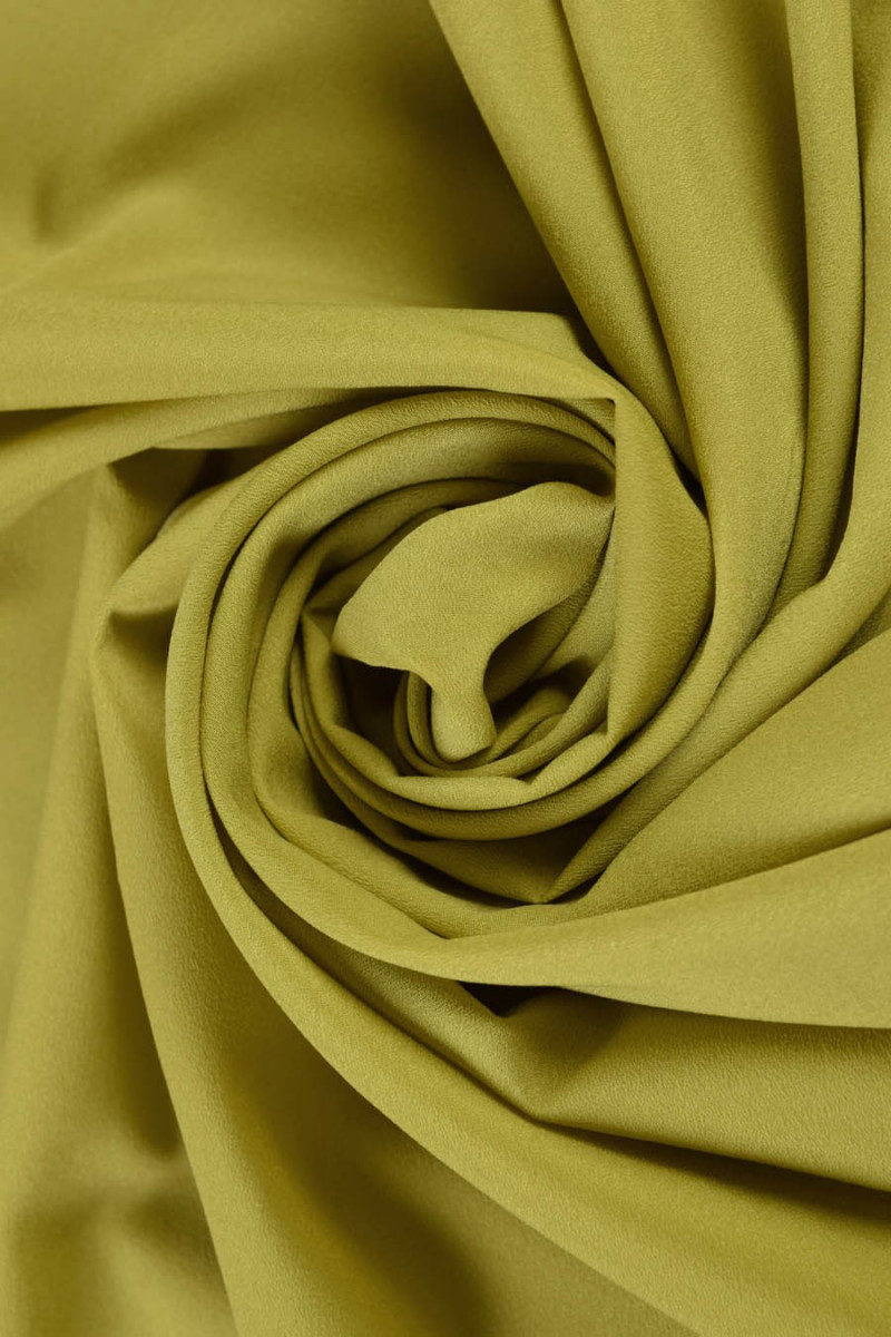 Поліестеровий креп - легка, тонка, делікатно непрозора, напівматова тканина. З його допомогою можна чаклувати над повітряними сукнями, ніжними блузами, шарфами, шарфами або використовувати для вирівнювання, наприклад, мережива або шифону.