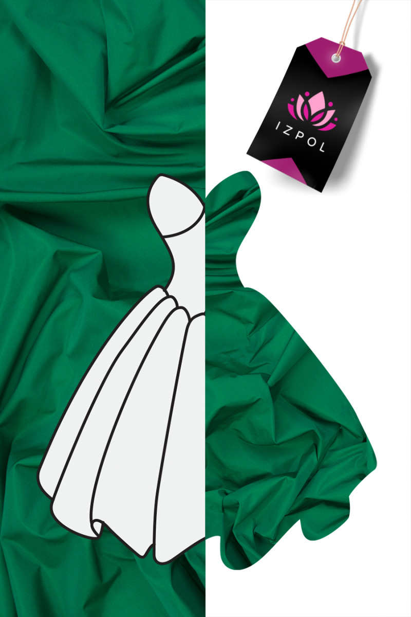 Італійська тканина тафта з поліестеру зеленого кольору. Тафта - тонка, але жорстка тканина з характерним ніжним блиском. Відмінно підійде для пошиття сукні, спідниці або в декоративних цілях.
